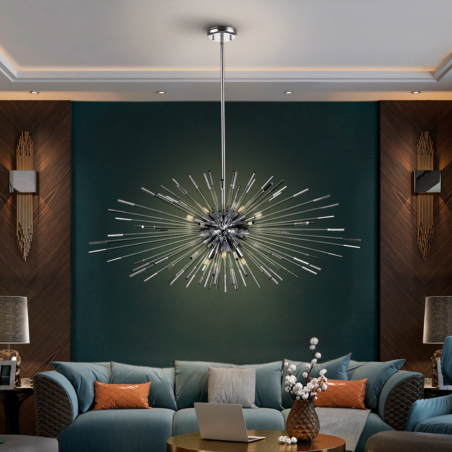- Salón: Opta por lámparas colgantes llamativas que se conviertan en el centro de atención de la estancia.