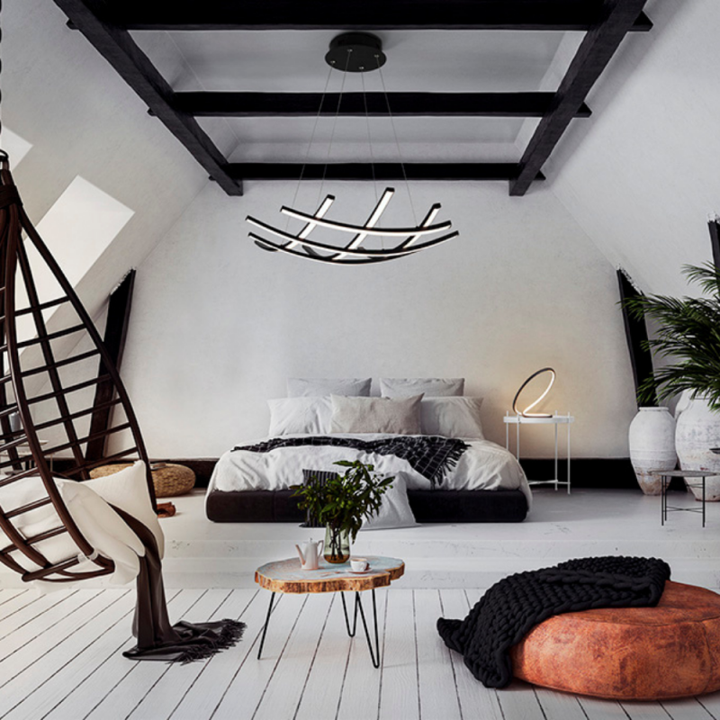 En nuestra colección encontrarás todo tipo de lámparas de techo: desde plafones led para techos bajos hasta lámparas colgantes de diseño ideales para techos altos. Tenemos opciones minimalistas, modelos con líneas modernas, lámparas colgantes vintage, diseños industriales, lámparas de araña contemporáneas o luminarias decorativas con luz suave y relajante. Las lámparas de techo modernas que ofrecemos están pensadas para adaptarse a diferentes estilos y espacios, incluyendo techos de madera, techos dobles o techos en dormitorios pequeños.