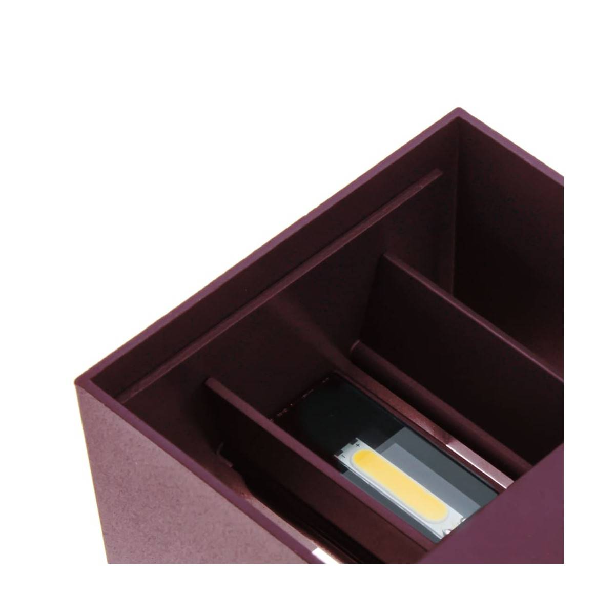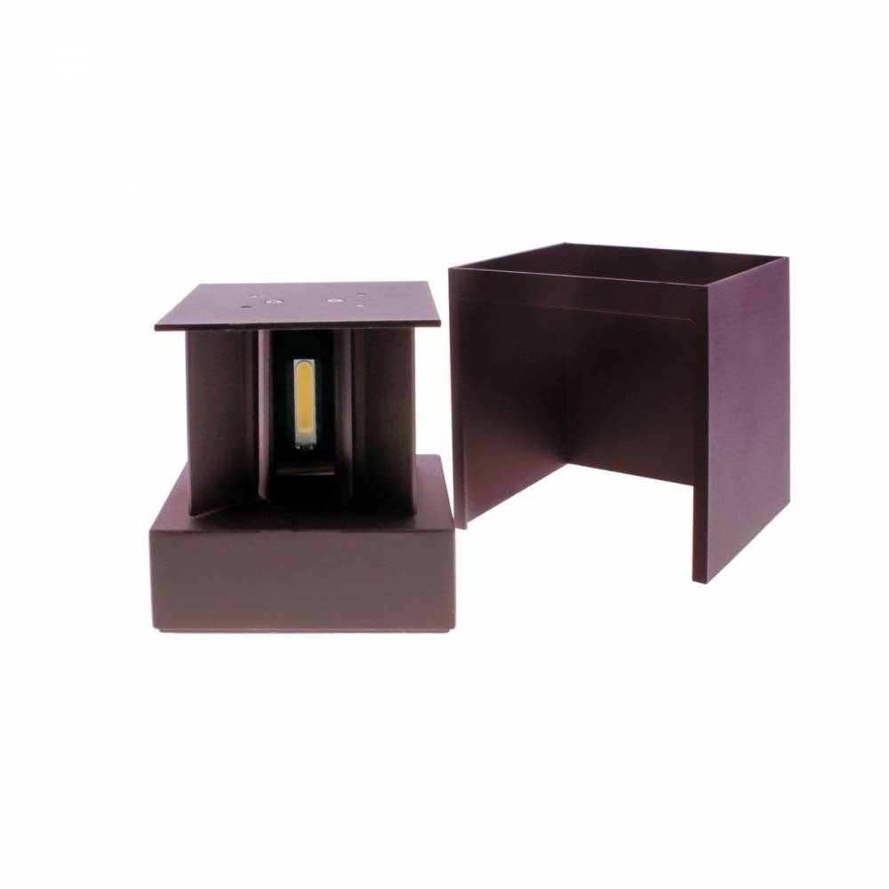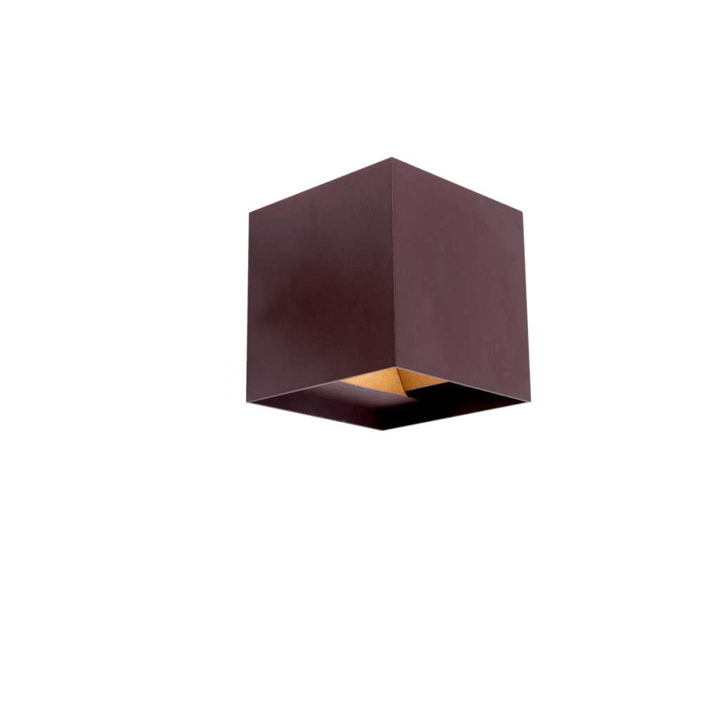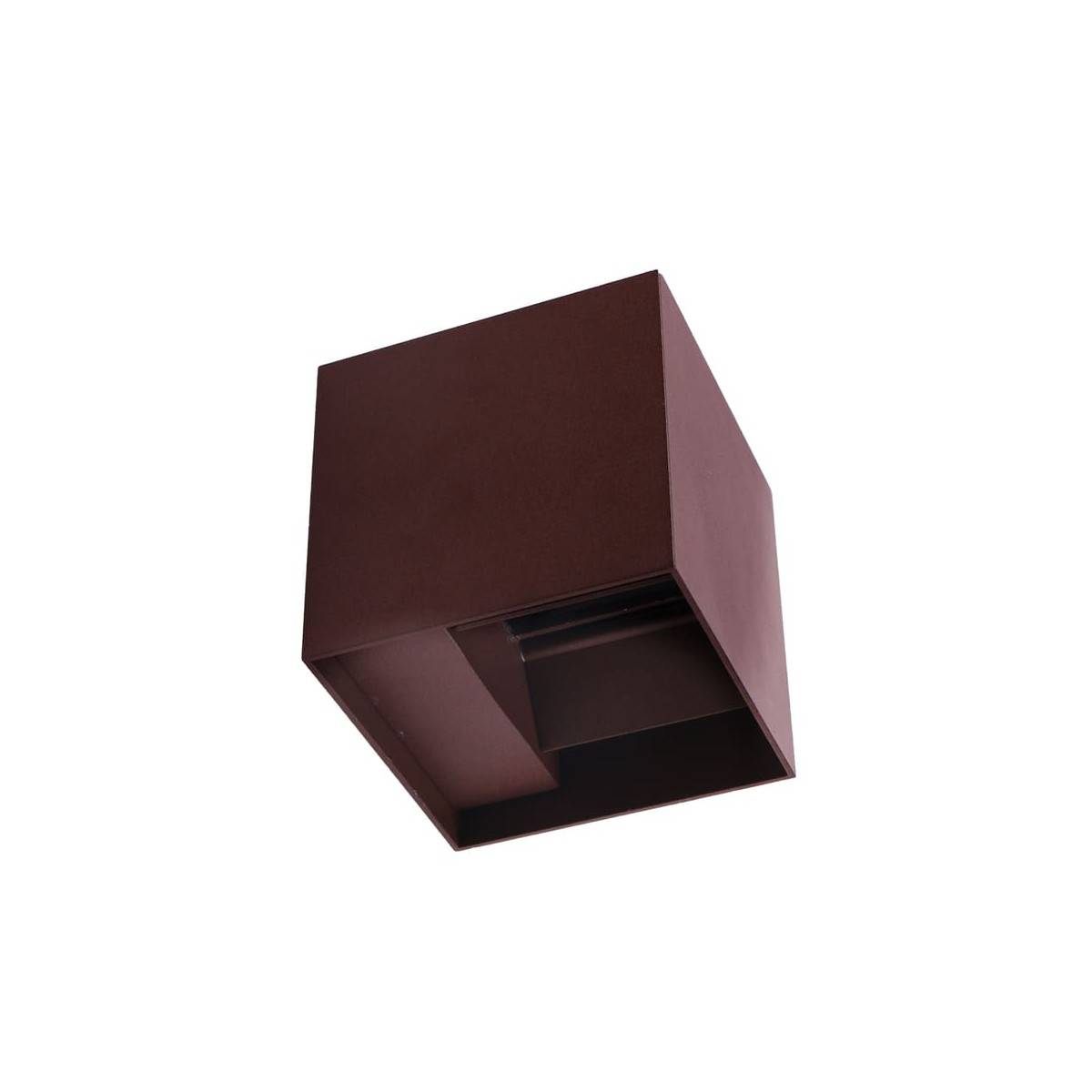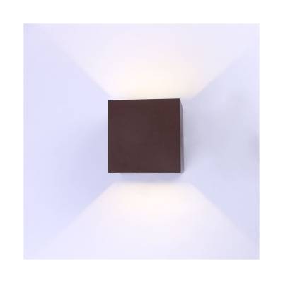 Aplique Led Cube para pared de exterior e interior con IP54, resistente al agua. Su estructura es de aluminio inyectado en acabado marrón óxido. Con este aplique podrás regular el haz de luz que crea el aplique con sus dos fuentes de luz gracias a unas pestañas abatibles en su interior. Tiene un consumo de 10w (700lm) en tonalidad 4000k (luz neutra). Disponible en otros acabados.