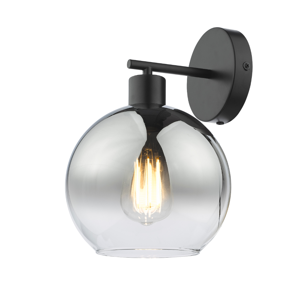 Aplique COCHEM negro con tulipa de vidrio. Diseño moderno compatible con bombilla E27.