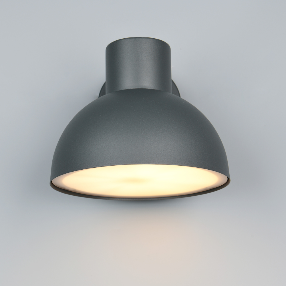 El aplique de pared Elbe forma parte de una colección de apliques de distintos acabados. El aplique Elbe esta realizado en aluminio fundido con un acabado gris antracita. Esta lámpara de pared combina un diseño industrial con un toque vintage, ideal para agregar calidez y estilo a cualquier espacio. Su pantalla en forma de cúpula direcciona la luz hacia abajo, proporcionando una iluminación suave y acogedora. Elbe es compatible con bombillas LED (no incluida). Su nivel de protección es de IP44 perfecto para utilizar en exteriores. Si lo deseas también puedes utilizarlo en interiores con decoración industrial o retro, esta lámpara se adapta a diversos entornos como salas de estar, dormitorios, pasillos o incluso áreas comerciales.