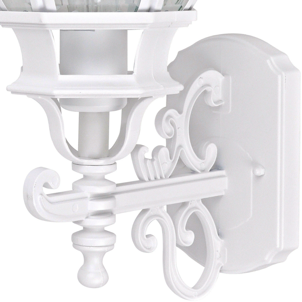 Compra online el aplique de pared exterior Góndola blanco. Fabricado en aluminio inyectado con cristal transparente y casquillo E27. Diseño clásico, resistente al agua (IP44).