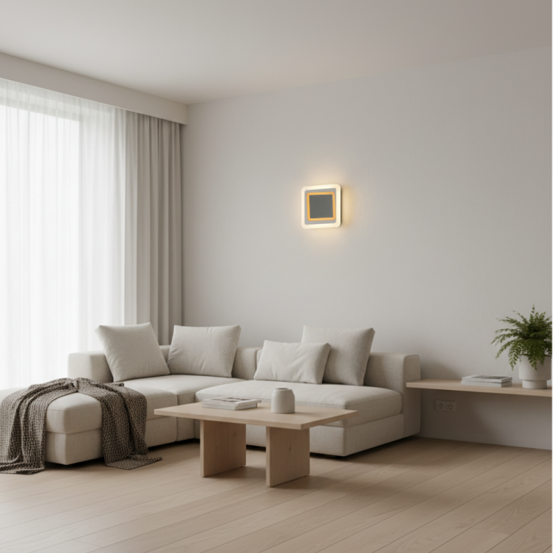 El aplique de pared Sofia es un aplique de pared decorativo de diseño moderno pensado para aportar luz ambiental y efecto visual en interiores. Su propuesta se basa en una iluminación combinada que mezcla luz cálida y luz neutra mediante tecnología CCT (3000–4000K), ideal para adaptar la sensación del espacio según el momento. Uno de sus rasgos diferenciales es la placa LED central móvil, que permite variar la posición y crear diferentes composiciones en la pared, aportando dinamismo y un punto decorativo original en salones, pasillos, recibidores o dormitorios. Integra LED de 12W con 900 lúmenes y un haz de 120°, ofreciendo una iluminación amplia y agradable. Su difusor opal en PMMA ayuda a suavizar la luz y reducir deslumbramientos, mientras que el cuerpo en plástico blanco mantiene una estética limpia y actual. Está diseñado para interior con IP20, resistencia IK05, vida útil 30.000 h y 5.000 ciclos on/off. Funciona a 170–265V (50/60Hz) y cuenta con Clase II de protección eléctrica. Sus medidas son 184 × 184 × 53 mm, lo que lo hace perfecto para paredes donde se busca presencia sin ocupar demasiado volumen.