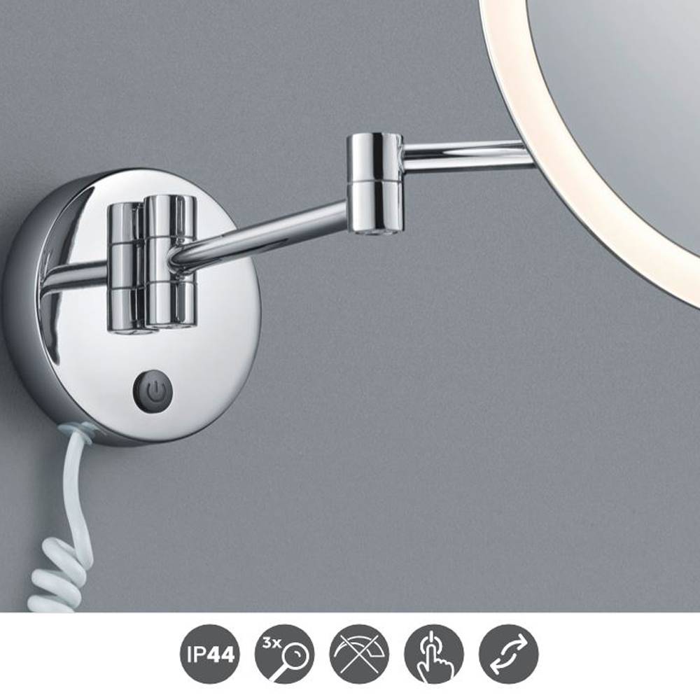 El aplique Espejo View es la mejor opción si necesitas un espejo tocador en el baño. Su montaje es en pared. Tiene un IP44 que lo protege de la humedad. Su estructura es de metal en cromado y su luz cálida (3000k) sale a través de su acrílico opal blanco. Lleva integrado led de 3w consumo (280lm). Su espejo tiene un aumento de 3x. Además su brazo es extensible y su cabezal orientable. Interruptor en su base de on// off.