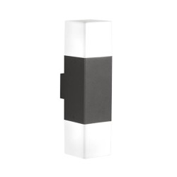 Aplique para exterior de estilo moderno modelo Hudson II. Su estructura es de aluminio fundido en acabado antracita. Difusor de plástico en color blanco. Incluye dos bombillas led de 3.5w (320lm) consumo cada una, en tonalidad 3000k (luz cálida). Hudson emite luz hacia arriba y hacia abajo. Hudson se puede utilizar para iluminar un patio, terraza, un balcón o la entrada de una vivienda. Disponible en diferentes versiones.