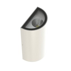 Aplique para exterior con un nivel de protección IP54. Su estructura esta realizada en aluminio acabado blanco. Lleva integrado 2 led de 3w consumo (630 LM). La luz que emite tiene una tonalidad 3000k (luz cálida) y la emite hacia arriba y hacia abajo. Es ideal para la iluminación en espacios de exterior donde deseemos crear un efecto de luz en la pared. Está disponible en tonalidad 4000k (luz neutra) y también en acabado gris oscuro.