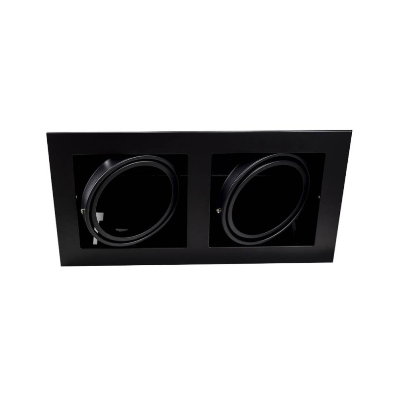 Empotrable Cardan 2 luces. Está realizado en acero acabado negro mate. Compatible con bombillas led, formato QR111 casquillo GU10 (no incluidas). Sus aros son oscilantes, lo que nos permite orientar la luz hacia donde necesitemos. Su medida de corte es de 340mm x 170mm. Disponible en otros acabados y formatos.