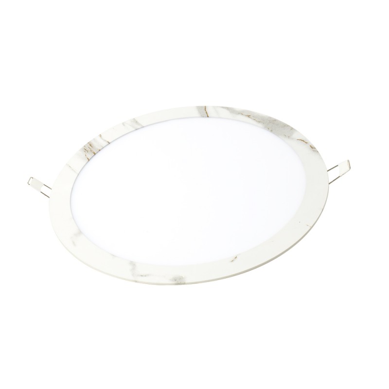 Downlight Circular "Betas Blanco". Este cómodo downlight diseñado para instalación empotrada luce un acabado en metal blanco decorado con betas beige y grises, evocando el efecto del mármol. Cuenta con un difusor de PVC en tono blanco y se encuentra equipado con una placa LED integrada de 30w, que emana una luminosidad de 3210lm. Proyecta una luz de tonalidad neutra de 4000k y cubre un haz luminoso de 120º. Se requiere un orificio de corte de 28,5 mm Ø para su montaje. El modelo "Betas Blanco" también está a la disposición en variados acabados y dimensiones, siendo una alternativa excelente para iluminar cualquier espacio que sea adecuado para una luminaria empotrada.