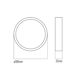 Downlight de superficie Alverlamp circular acabado mármol negro. LED 30W, 3210 lm, 4000K y CRI 90 con apertura 120° para luz uniforme. Medidas 300×300×32 mm, IP20, Clase II, 220–240V. Ideal para hogar, comercio u oficina.