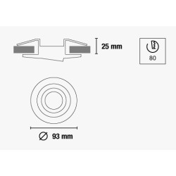 Empotrable Helium redondo basculante en estructura de aluminio de color blanco. Ángulo de basculación: 30º Ángulo de giro: 351º Necesita un agujero de 8cm para su instalación.