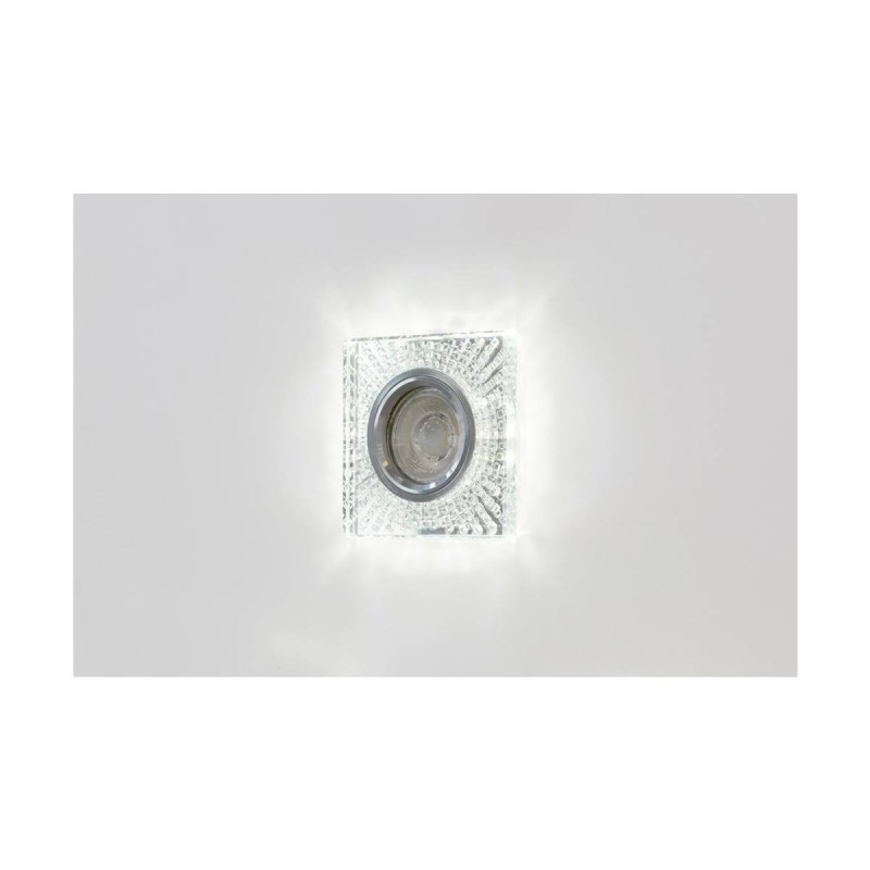 Empotrable cuadrado de la familia Laber. Su estructura está compuesta por aluminio en acabado cromo y cristal transparente con pequeños detalles calados . Es compatible con bombillas led formato GU10 (no incluida). Lleva integrada una pequeña tira led de 3w consumo (300lm), que se enciende a modo de luz indirecta y decorativa en tonalidad 4000k (luz neutra). Su agujero de corte es de 7.5cm Ø. Dispone de 3 opciones de encendido.