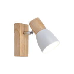 Lan es una colección de lámparas de acabado moderno que nos permite utilizarlas en ambientes de estilo nórdico y moderno. El foco 1L Lan esta realizado en metal acabado blanco y madera en acabado natural. Es compatible con bombillas led (no incluida). Su foco es orientable, lo que nos permite orientar la luz hacia donde necesitemos. Gracias a su diseño podemos instalarlo en el techo o en pared. Ideal para iluminar espejos, pasillos, cabeceros de dormitorio...