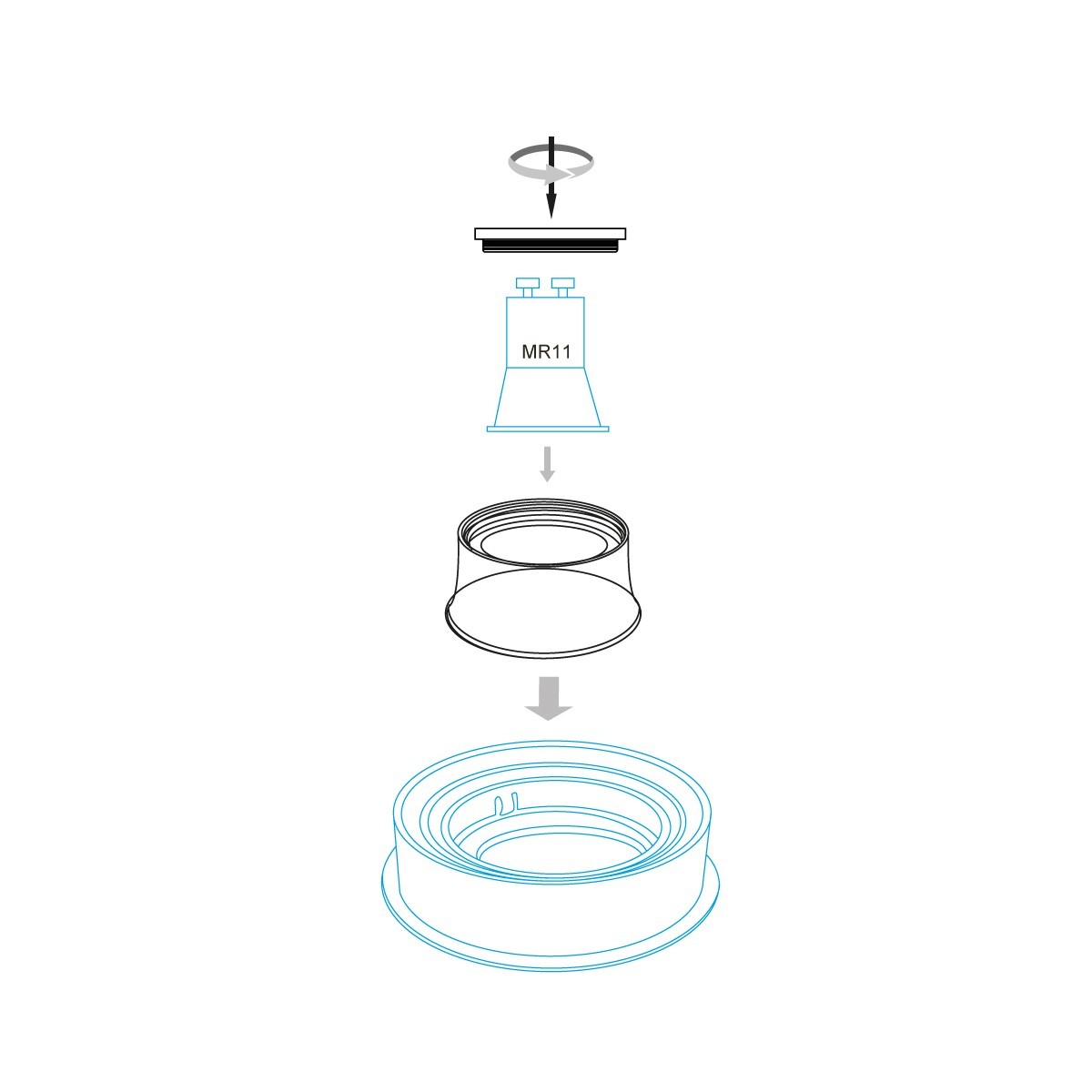 Adaptador para GU11 Confort Blanco CristalRecord en aluminio, acabado blanco. Medidas Ø50 mm y alto 29 mm. Ideal para instalaciones de empotrables Confort.