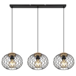 Lámpara de techo modelo Lacky 3L. Su estructura es de metal acabado negro con un pequeño detalle en madera. Tulipas de rejilla en metal negro. Lacky es compatible con bombillas led (no incluida), os recomendamos utilizar bombillas de formato transparente. La altura de sus tulipas es regulable a la hora de la instalación.La colección Lacky se compone de varias versiones de lámparas. Gracias a su diseño podemos adaptar esta luminaria a cualquier estancia y de diferentes estilos.