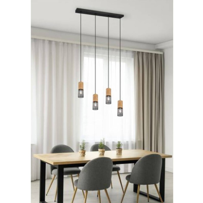 Lámpara de techo colgante Tosh 4L 4xE14 acabado madera tulipas rejilla metal negro estilo moderno