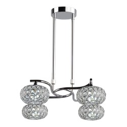 Lámpara de techo en acabado cromo con tulipas rellenas de copens de cristal transparente. Compatible con bombillas led ( no incluidas). Ideal para estancias de estilo moderno como dormitorios, salones, recibidores etc... Disponible en diferentes formatos.