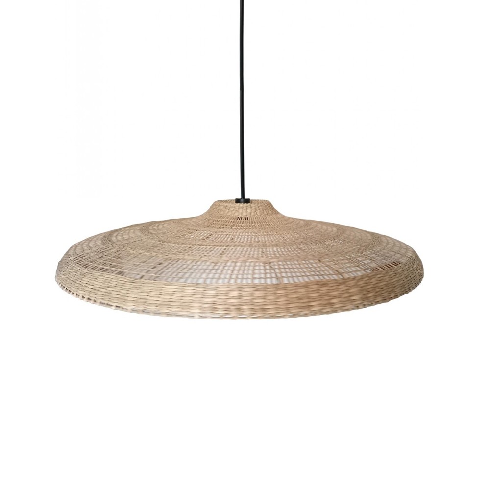 La lámpara colgante Ari Big destaca por su elegante diseño y tamaño generoso. Con un pendel negro de PVC y pantalla tejida de alga natural, ofrece un contraste encantador. Ajustable en altura y compatible con LED, es ideal para cualquier estilo y ofrece una iluminación eficiente.