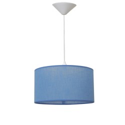 Lámpara colgante con forma cilíndrica en acabado tela color azul cielo .Sujeción al techo regulable en altura y en acabado cromo. Compatible con bombillas incandescentes, bajo consumo y led (bombillas no incluidas).Ideal para cualquier estancia.