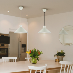 La lámpara colgante Schuller Cono 1L es una luminaria de diseño moderno y minimalista que aporta estilo y funcionalidad a cualquier espacio interior. Fabricada en metal con acabado gris perla mate y equipada con un difusor de acrílico opal, esta lámpara ofrece una iluminación suave, homogénea y sin deslumbramientos, ideal para ambientes residenciales contemporáneos. Su diseño elegante se complementa con un cable regulable en altura a la hora de la instalación (de aprox. 40 cm hasta 150 cm), lo que permite adaptarla a techos de diferentes alturas y necesidades de iluminación, consiguiendo desde luz ambiental general hasta un punto de luz focal sobre mesas de comedor, barras de cocina o zonas de lectura. Este colgante incorpora un portalámparas E27 (bombilla no incluida), compatible con bombillas LED, halógenas o de bajo consumo, lo que te permite personalizar la temperatura de color y el estilo de la luz según tu decoración y uso deseado. Con un diámetro de 36 cm y un acabado sobrio en tono gris perla mate, Cono se integra con elegancia en estilos modernos, nórdicos o minimalistas, aportando una estética ligera y actual a salones, cocinas, dormitorios o recibidores.