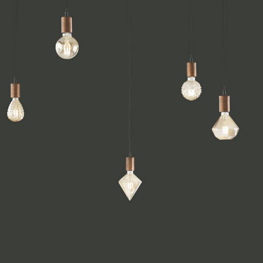 Lámpara de techo colgante Cord 5xE27 acabado negro y cobre antiguo estilo vintage