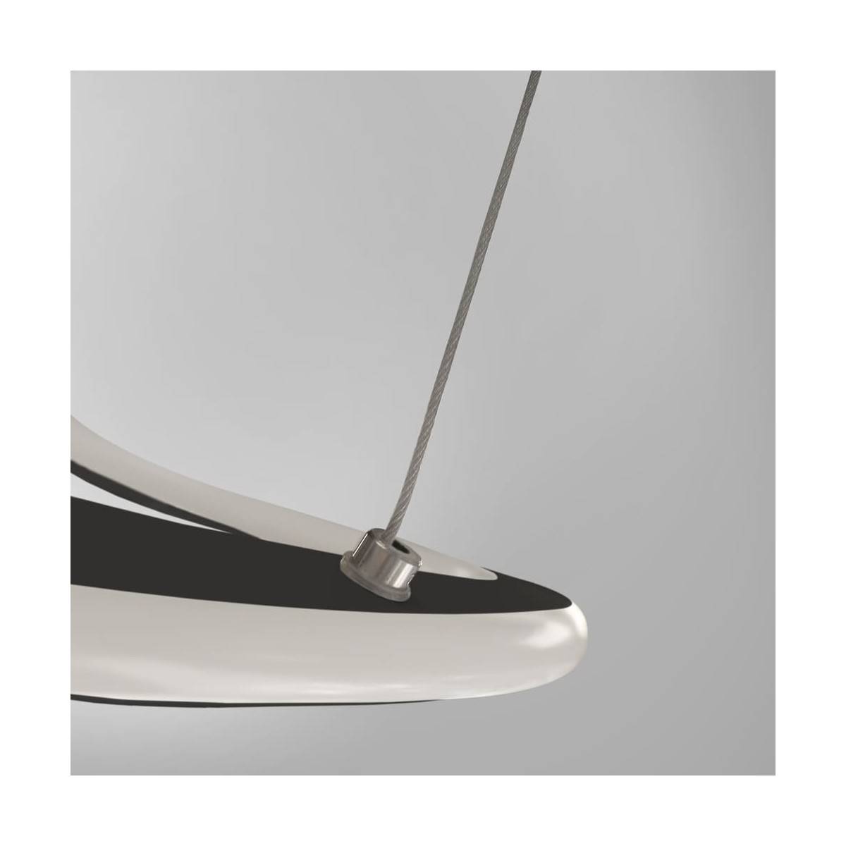 Original lámpara colgante modelo Dunia. Su estructura es de aluminio en acabado negro y difusor en policarbonato blanco. Su luz es indirecta y tiene un consumo led de 53w (4600lm). Incluye mando a distancia y desde él podemos elegir la tonalidad de luz (2800k/400k/5500k), regular la intensidad, luz de posición y memoria de encendido. Su altura es regulable a la hora de la instalación. Dunia es Ideal para iluminar un salón o un dormitorio. Disponible en acabado blanco.