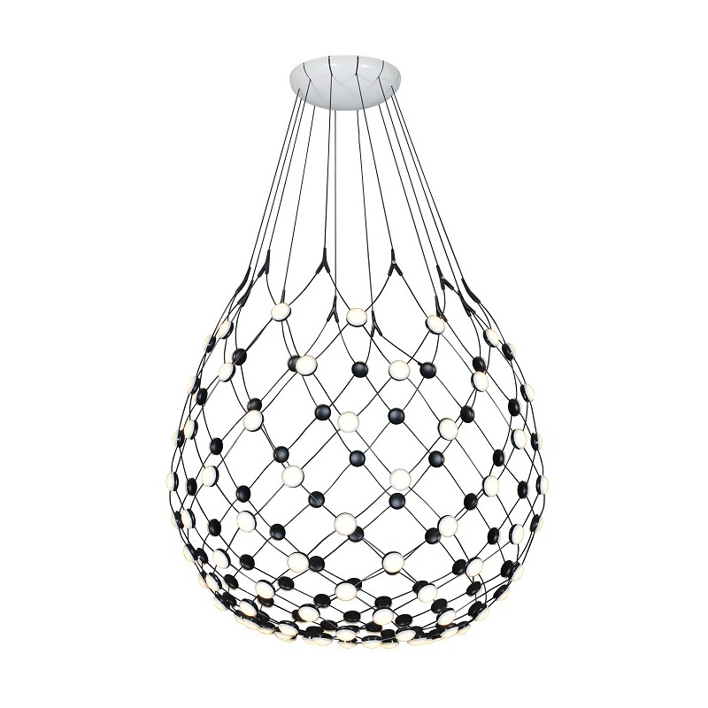 Lámpara colgante Globus, estructura de metal y cuerpo en forma de red en la que van unidos los leds unos con otros. Tiene 26W de potencia y un tono de luz blanca (4000K). Es una lámpara de techo ideal para estancias de estilo moderno que sean grandes, como salones y dormitorios.