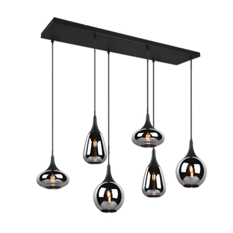 Lámpara de techo colgante Lumina 6 luces 6xE14 acabado metal negro cristal ahumado efecto espejo estilo moderno