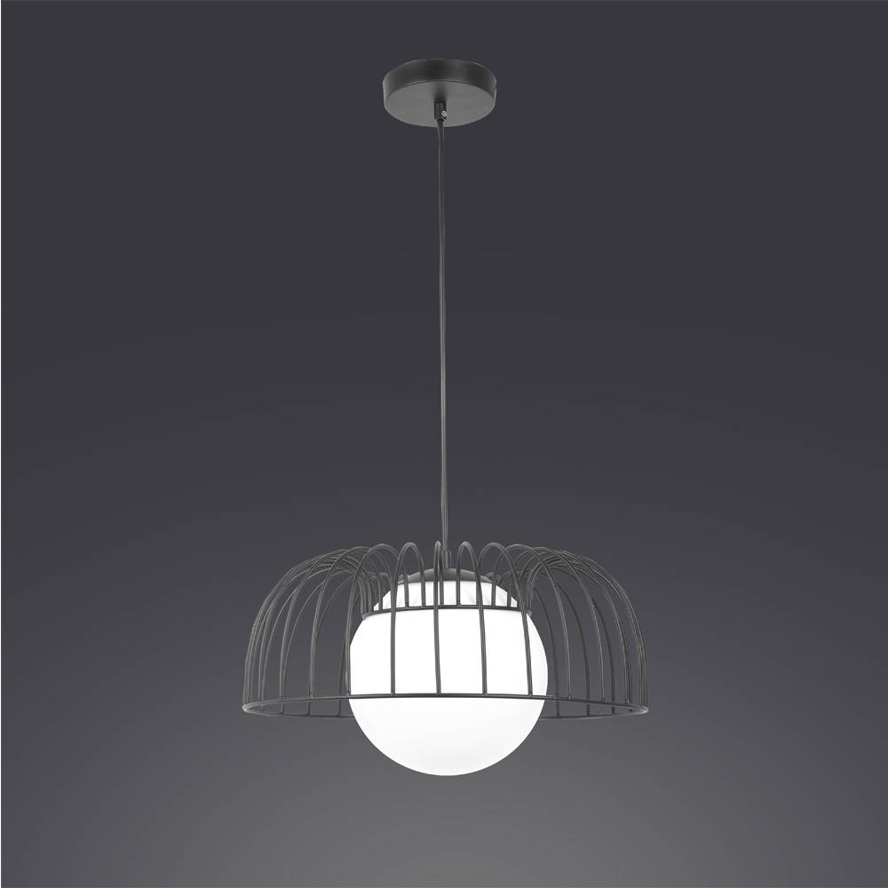 Lámpara colgante Tilo con estructura en metal acabado negro y tulipa central con forma de esfera en cristal blanco mate. Es compatible con bombilla de led (no incluida). Tilo es regulable en altura a la hora de la instalación. La lámpara colgante Tilo es ideal para iluminar estancias pequeñas o para colocar en conjunto con más unidades, encima de una barra o una mesa