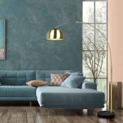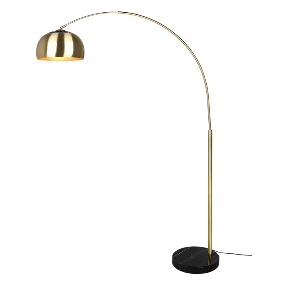 La lámpara de pie arqueada Argentina es una pieza icónica y muy funcional para iluminar zonas de estar con estilo. Su diseño tipo arco permite llevar el punto de luz hasta el sofá o la butaca sin necesidad de instalación en techo, por lo que resulta ideal como lámpara de lectura o como luz ambiente en salones, comedores o rincones de relax. Está diseñada para integrarse con facilidad en decoraciones contemporáneas y atemporales: el armazón y la pantalla en acabado latón/bronce mate se combinan con una base negra efecto mármol, aportando contraste y un toque sofisticado. Funciona con 1 bombilla E27 (no incluida), lo que te permite elegir el tipo de luz (recomendable LED) según el ambiente deseado. El encendido es especialmente cómodo gracias a su interruptor de pie, pensado para un uso diario práctico. Por tamaño, es perfecta para estancias amplias: 200 cm de alto, 38 cm de ancho y 172,5 cm de fondo, con un peso aproximado de 19,4 kg que aporta estabilidad. Está indicada para interior (IP20).