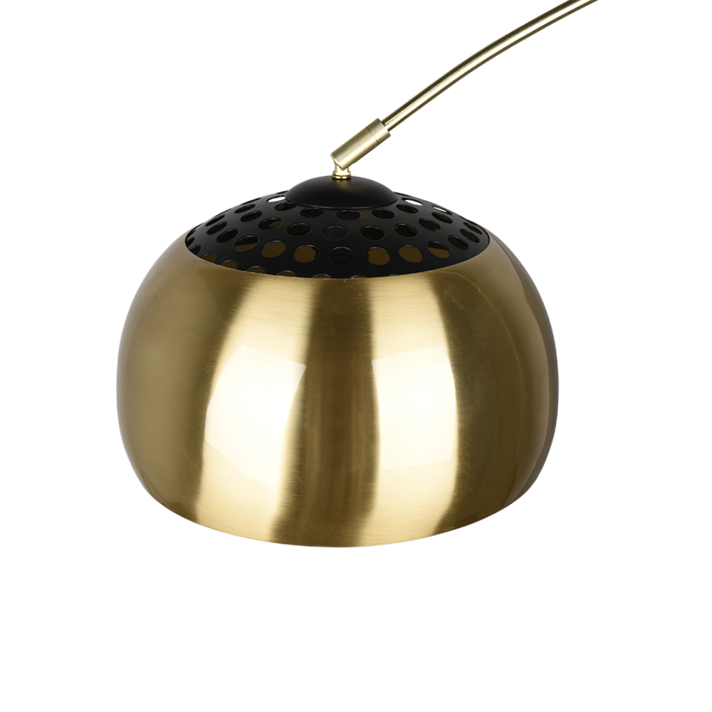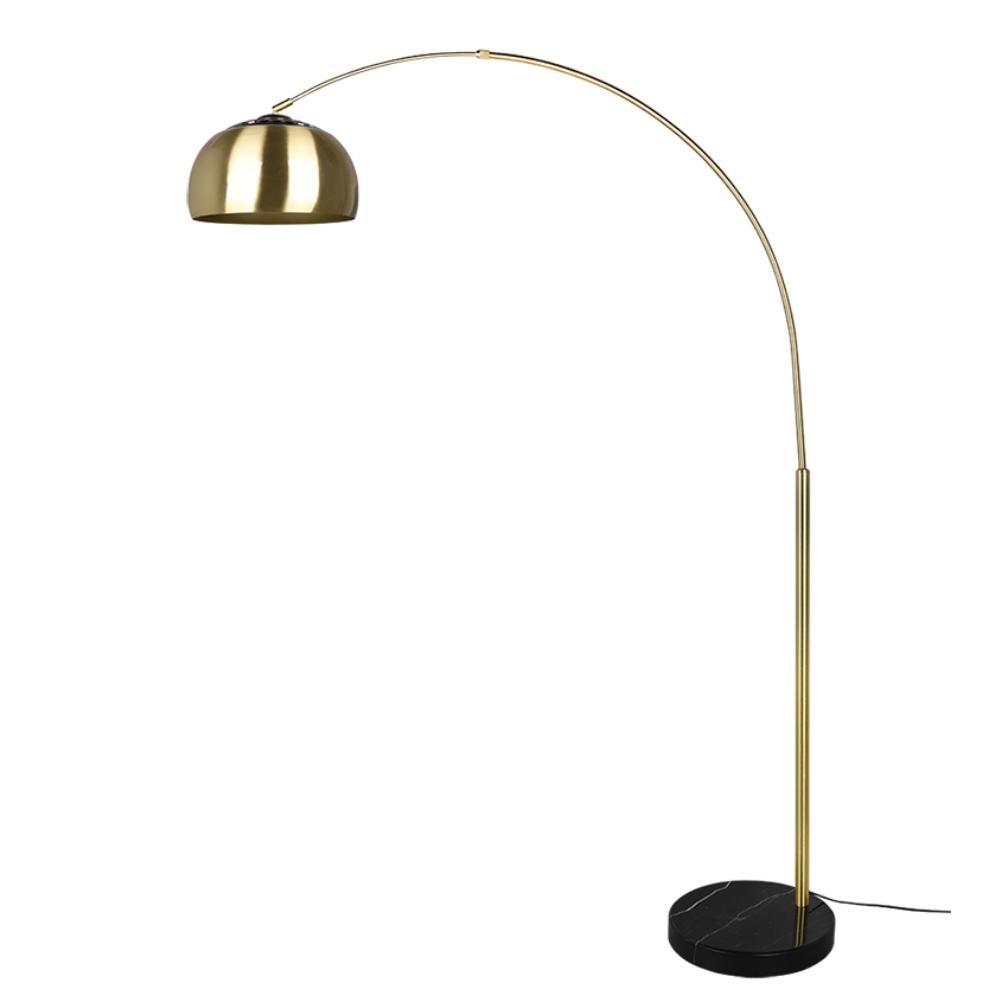 Lámpara de pie arco Argentina en latón/bronce mate con base negra efecto mármol. 1xE27 (bombilla no incluida) y interruptor de pie. Medidas: alto 200 cm, ancho 38 cm, fondo 172,5 cm. IP20