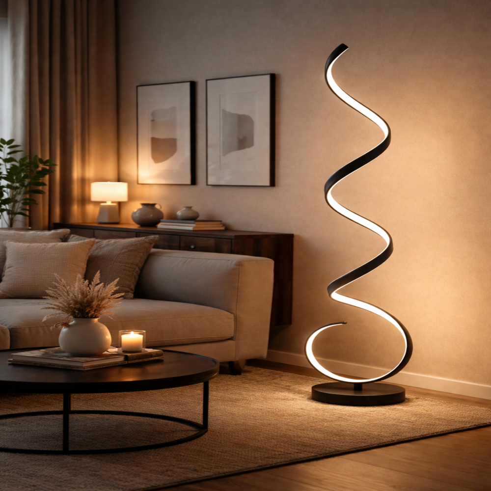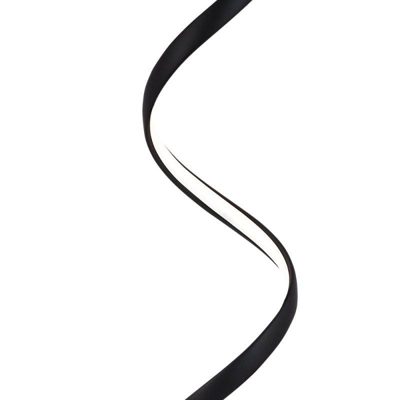 La lámpara de pie Bouillon LED 43W en acabado negro destaca por su diseño escultórico y elegante, convirtiéndose en una pieza decorativa única que aporta personalidad a cualquier espacio. Su estructura sinuosa en forma de espiral combina líneas fluidas con una iluminación integrada, creando un efecto visual moderno y sofisticado. Equipada con tecnología LED de 43W y temperatura de color neutra de 4000K, proporciona una luz clara y equilibrada, ideal tanto para iluminación ambiental como para complementar la iluminación principal en salones, dormitorios o zonas de lectura. Su diseño minimalista en metal color negro se adapta perfectamente a interiores contemporáneos, modernos o industriales, aportando un toque artístico sin sobrecargar el ambiente. Además, su base estable de 28 cm de diámetro garantiza firmeza y seguridad. Gracias a su iluminación eficiente y de bajo consumo, esta lámpara combina estética y funcionalidad, siendo una opción ideal para quienes buscan una iluminación decorativa con carácter.