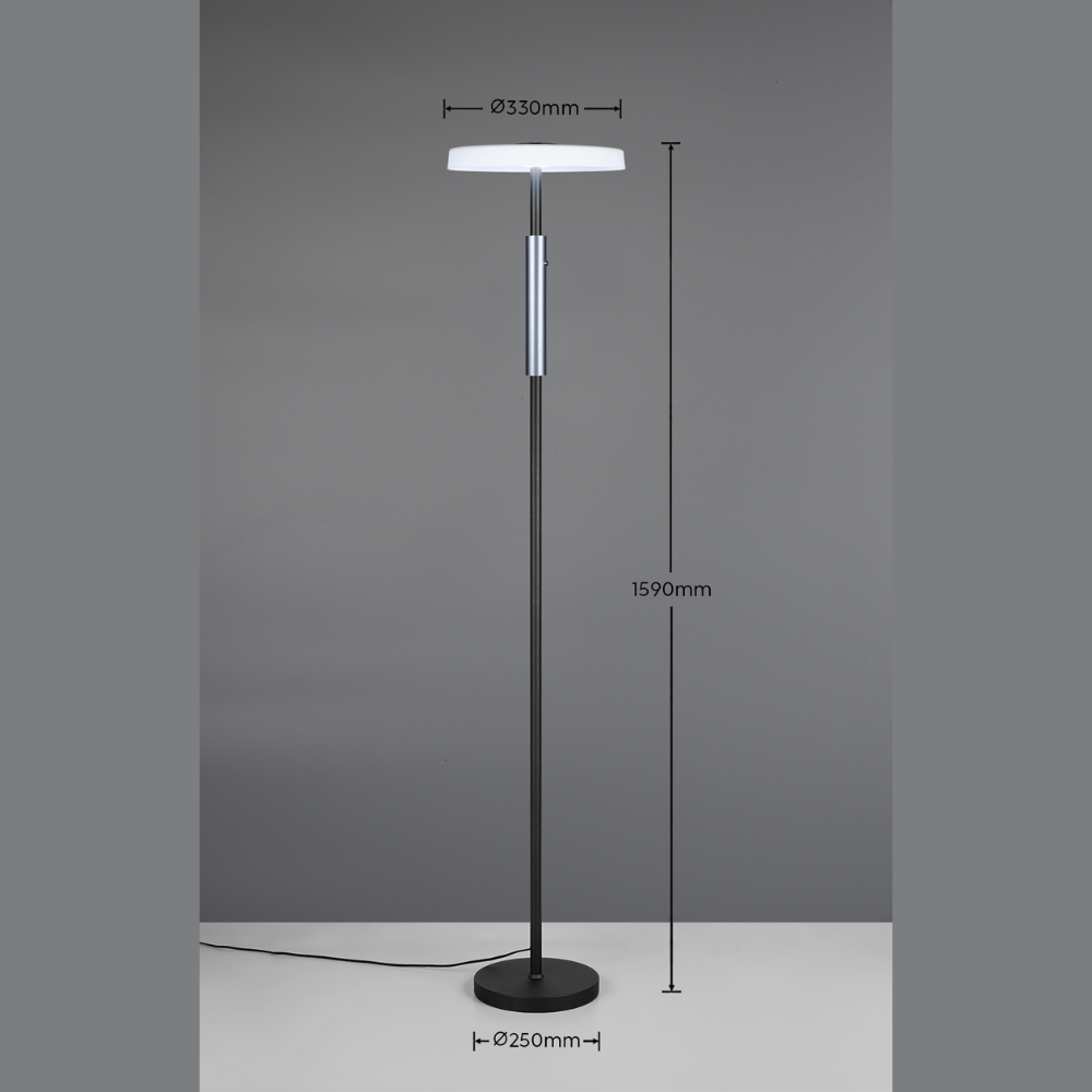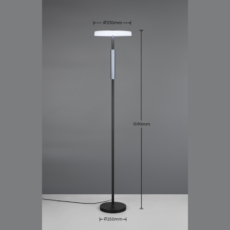 La lámpara de pie Celeste de TRIO Lighting combina un diseño contemporáneo con una iluminación cálida y eficiente, perfecta para salones, rincones de lectura, dormitorios o zonas de trabajo. Su estética se apoya en la mezcla de metal y cristal, con una pantalla de vidrio mate que crea una luz suave y agradable, aportando un toque decorativo elegante sin deslumbrar. Integra LED SMD de 15W con un rendimiento de 1.750 lúmenes y 3000K (luz cálida), ofreciendo una iluminación potente para ambiente y apoyo. Además, incorpora regulación táctil/sensor (touch) con ajuste cómodo de intensidad y función memoria, que recuerda el último nivel utilizado para que la lámpara se encienda tal y como la dejaste. Por medidas, es una pieza equilibrada y fácil de ubicar en salones, zonas de lectura , etc...Medidas: 160 cm de altura y 33 cm de diámetro, con IP20 para uso en interiores. El cable de 180 cm aporta flexibilidad de colocación junto a sofás, butacas o en pasillos amplios. Una opción ideal si buscas una lámpara de pie moderna con luz cálida regulable, presencia decorativa y manejo práctico en el día a día.