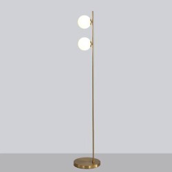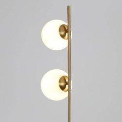 Lámpara de pie modelo Doris oro. Su estructura es de metal en acabado dorado. Sus tulipas son una esfera de 12cm Ø realizada en cristal blanco opal. Doris es compatible con bombillas led (no incluidas).Doris es ideal para utilizar en diferentes estancias como por ejemplo un salón, un dormitorio e incluso una oficina. La lámpara de pie Doris está disponible en acabado negro, tulipas opal blancas y en otros formatos de lámparas.