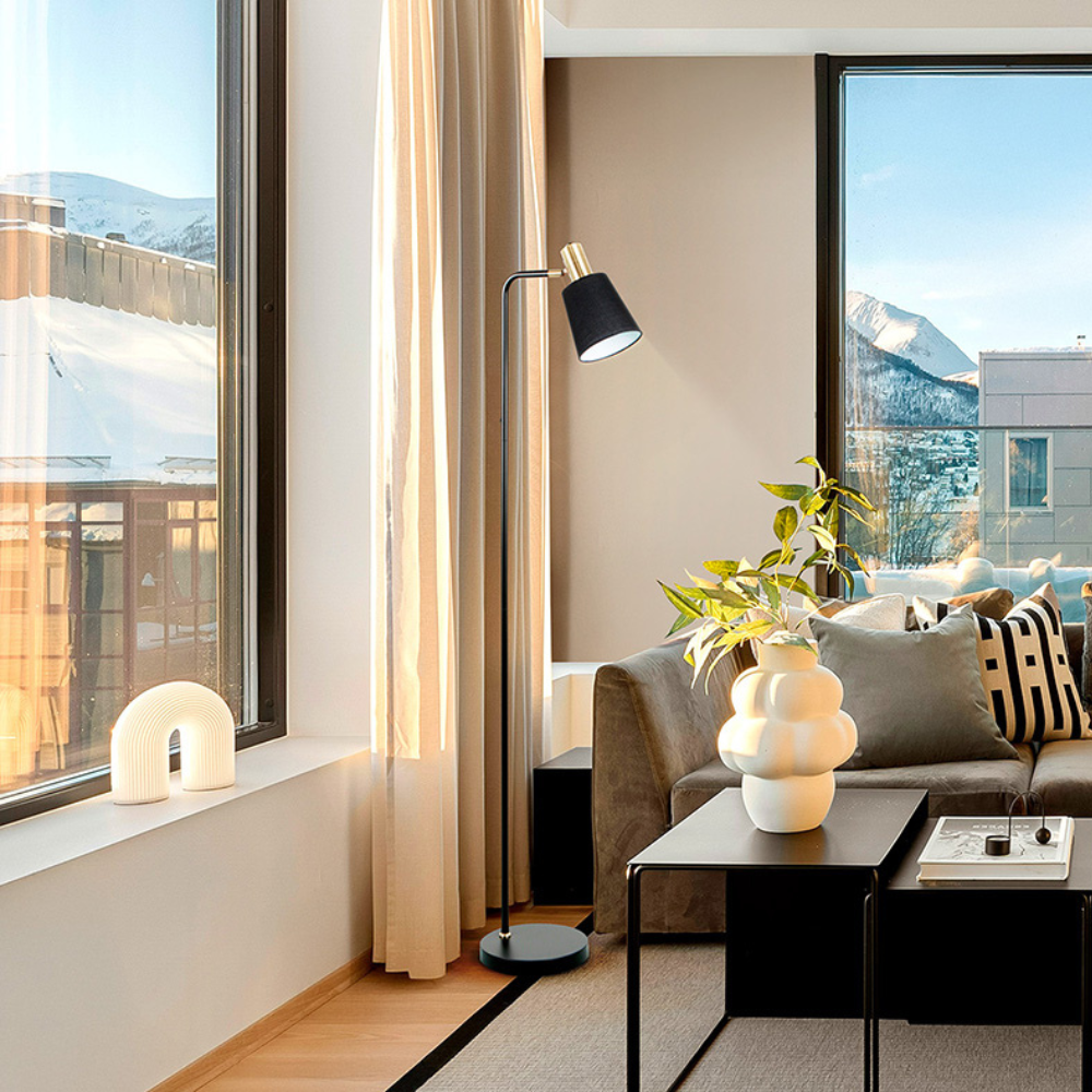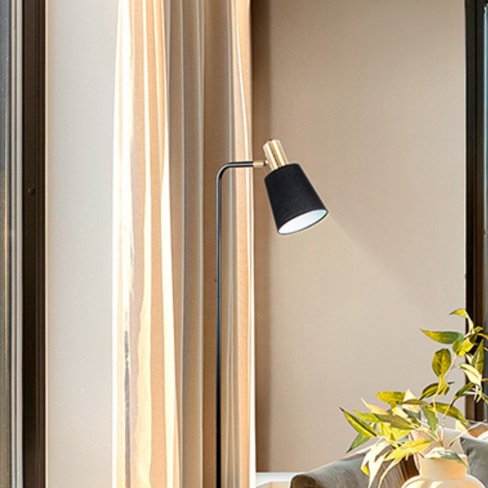 La lámpara de pie Gisela de Schuller es una luminaria de estilo contemporáneo que combina diseño elegante y funcionalidad para aportar luz ambiental cálida en cualquier estancia de tu hogar. Fabricada en metal con acabado negro mate y detalles en latón satinado, esta lámpara de pie destaca por su estética moderna y versátil, perfecta para salones, dormitorios o rincones de lectura donde se busca una iluminación suave y decorativa. Tiene una pantalla textil negra con inclinación ajustable, la lámpara permite orientarla para dirigir la luz con precisión y adaptar la iluminación al uso deseado —ya sea para leer, descansar o ambientar la estancia con estilo. El portalámparas E27 ofrece compatibilidad con una amplia gama de bombillas LED (bombilla no incluida) para que elijas la temperatura de color y la potencia lumínica que mejor se adapte a tus necesidades. Con unas dimensiones aproximadas de 149 cm de alto x 36 cm de ancho x 23 cm de fondo y un peso equilibrado, la lámpara de pie Gisela combina estabilidad y presencia visual sin ocupar espacio excesivo, convirtiéndose en una pieza luminosa funcional y un elemento decorativo de impacto en cualquier ambiente moderno o minimalista. Su diseño atemporal en negro mate y latón satinado aporta calidez, elegancia y una sensación de confort, destacando tanto por su apariencia como por su versatilidad lumínica.