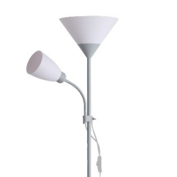 La lámpara de pie Karma combina funcionalidad y diseño moderno en un solo producto. Con una altura total de 165 cm, esta lámpara es perfecta para iluminar ambientes como salas, dormitorios u oficinas. Cuenta con dos puntos de luz con casquillo E27 (bombillas no incluidas), lo que permite personalizar la intensidad y tipo de luz según las necesidades del espacio. Su brazo de lectura lateral es regulable, ofreciendo mayor versatilidad para tareas específicas como lectura o estudio. Está fabricada con materiales resistentes, incluye protección IP20, y su acabado metal en blanco mate con pantallas de PVC blancas aporta un estilo elegante y contemporáneo. Una solución de iluminación práctica, decorativa y económica. Disponible en acabado gris y en acabado negro.
