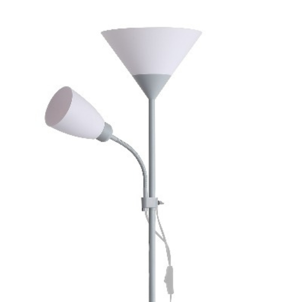 Lámpara de pie Karma 2xE27 acabado blanco estilo moderno brazo lector flexible