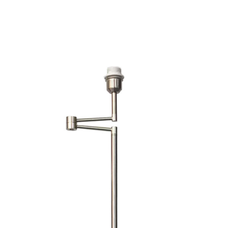 Lámpara de pie lector de metal níquel mate, con brazo flexible orientable y diseño moderno. Perfecta para lectura o iluminación puntual. Altura 134 cm, base 28 cm Ø. Sin pantalla incluida.