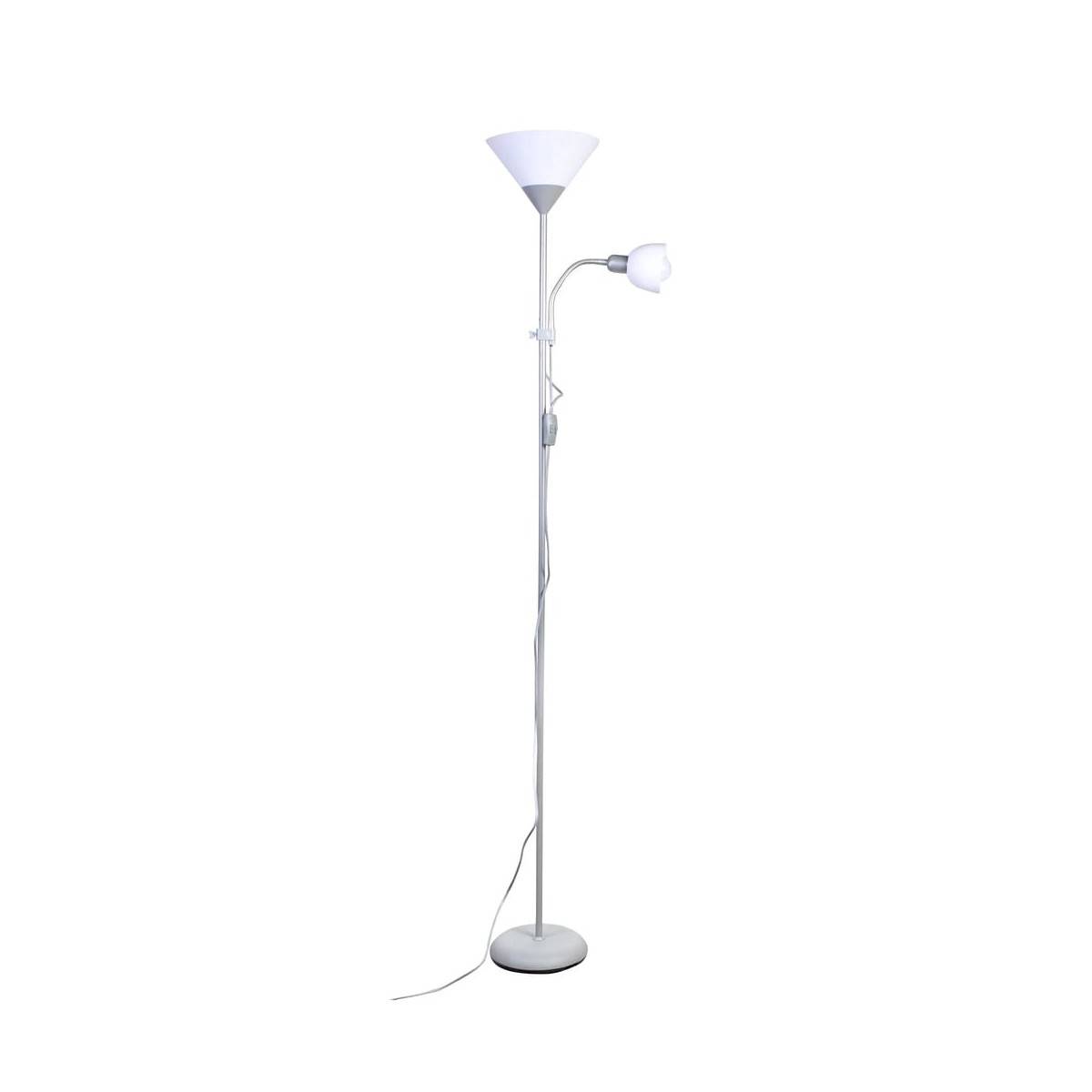 Lámpara de pie Lisa plata. Su estructura es de aluminio en acabado plata. Sus tulipas son de Pvc en color blanco. Compatible con bombillas led (no incluidas). Su brazo lector es flexible y nos permite orientar la luz hacia donde necesitemos. Además podemos regular la altura de él. Ideal para utilizar como lámpara de ambiente o lámpara de lectura. Interruptor on// off por separado, para cada luz, en el cable. Disponible en acabado blanco o en acabado negro.