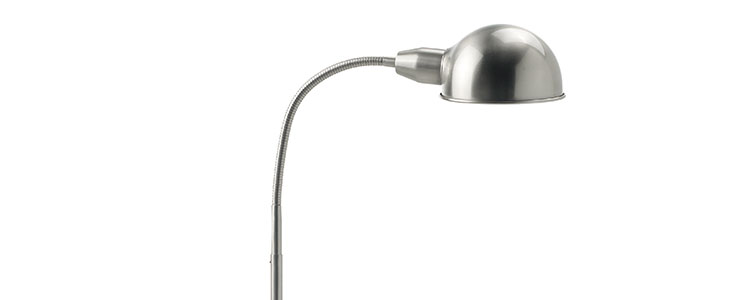 LAMPARA DE PIE PEP CROMO MATE Lampara de pie en acabado cromo mate estilo retro con brazo flexible.Compatible con incandescente, bajo consumo o led. Ideal para zonas de lectura , trabajo o luz de ambiente... Bombilla no inluida.