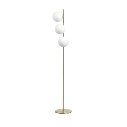 Lámpara de pie de la colección Rondo. La lámpara de pie Rondo 3L está compuesta por una estructura de metal en acabado latón mate (oro envejecido). Sus tulipas son de cristal blanco opal y miden 15cm Ø. Rondo es compatible con bombillas led (no incluidas). El pie Rondo es ideal para la iluminación de estancias con de estilo Vintage .Está disponible en negro y en otros formatos.