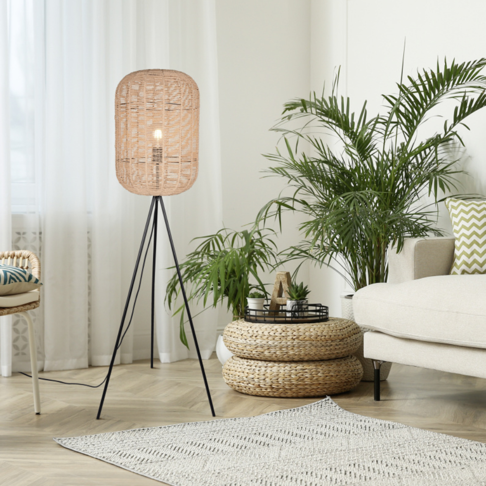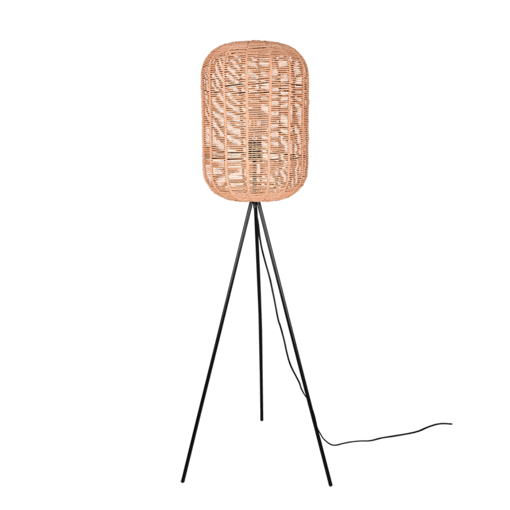 La lámpara de pie RUNA de TRIO Lighting combina diseño moderno y materiales naturales para crear una luminaria decorativa con gran personalidad. Su estructura metálica en acabado negro mate se complementa con una pantalla elaborada en sisal, un material natural que aporta textura y un estilo cálido y acogedor al ambiente. Gracias a esta combinación de materiales, la lámpara proyecta una luz cálida y agradable, generando además sombras decorativas que aportan carácter a la estancia. Este efecto la convierte en una opción ideal para crear atmósferas confortables en salones, dormitorios, recibidores o zonas de lectura. La luminaria funciona con 1 bombilla de casquillo E27 (no incluida), lo que permite elegir la intensidad y temperatura de color según las necesidades del espacio. Se recomienda el uso de bombillas LED para obtener una iluminación eficiente y duradera. Dispone de interruptor de pie, lo que facilita su encendido y apagado de forma cómoda. Con una altura aproximada de 150 cm y un diámetro de 35 cm, es una pieza perfecta para completar la iluminación ambiental del hogar con un toque natural y contemporáneo. Runa esta disponible en formato lámpara de techo colgante.