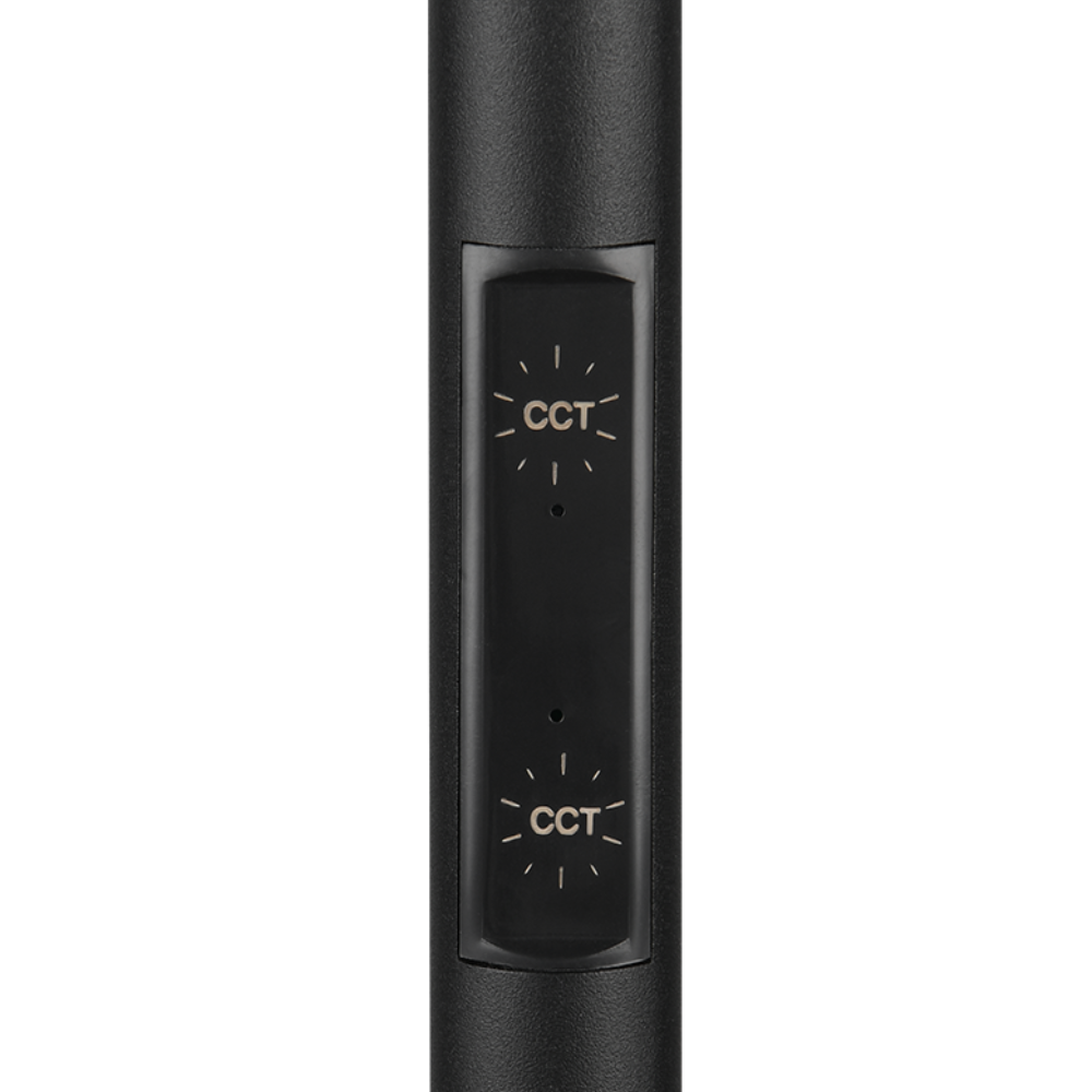 La lámpara de pie Specter de TRIO Lighting combina un diseño minimalista con una funcionalidad pensada para el día a día. Incorpora doble luz LED integrada: una luz principal tipo “uplight” para iluminar la estancia y un brazo flexible ideal como luz de lectura o apoyo. Ambas fuentes son conmutables de forma independiente, permitiendo crear escenas distintas según el momento (ambiente, lectura o iluminación completa). Su luz se adapta al ambiente gracias al CCT regulable (selección de tono) en 2700K / 4000K / 6500K, y la intensidad puede ajustarse mediante dimmer con sensor para conseguir desde una iluminación suave hasta una luz más funcional. Además, el cabezal de la luz principal es orientable y el brazo secundario es flexible, para dirigir la luz exactamente donde la necesitas. En rendimiento, ofrece 17W y 1900 lm en la luz principal y 4,5W y 450 lm en la luz auxiliar, con un consumo eficiente y un resultado luminoso muy completo. Con acabado negro mate, es una opción muy versátil para salones, dormitorios, despachos o rincones de lectura. Sus dimensiones aproximadas son 178 cm de altura y base Ø25 cm, lo que asegura estabilidad sin ocupar demasiado espacio.