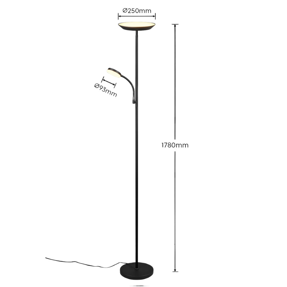 Lámpara de pie Specter LED 17w +4.5w 3CCT integrado acabado negro estilo moderno dimmable 25cm Ø