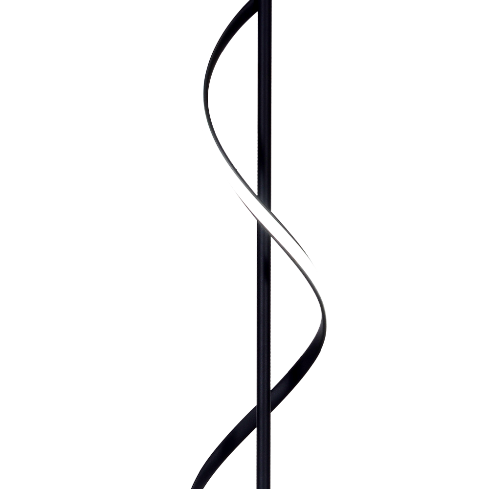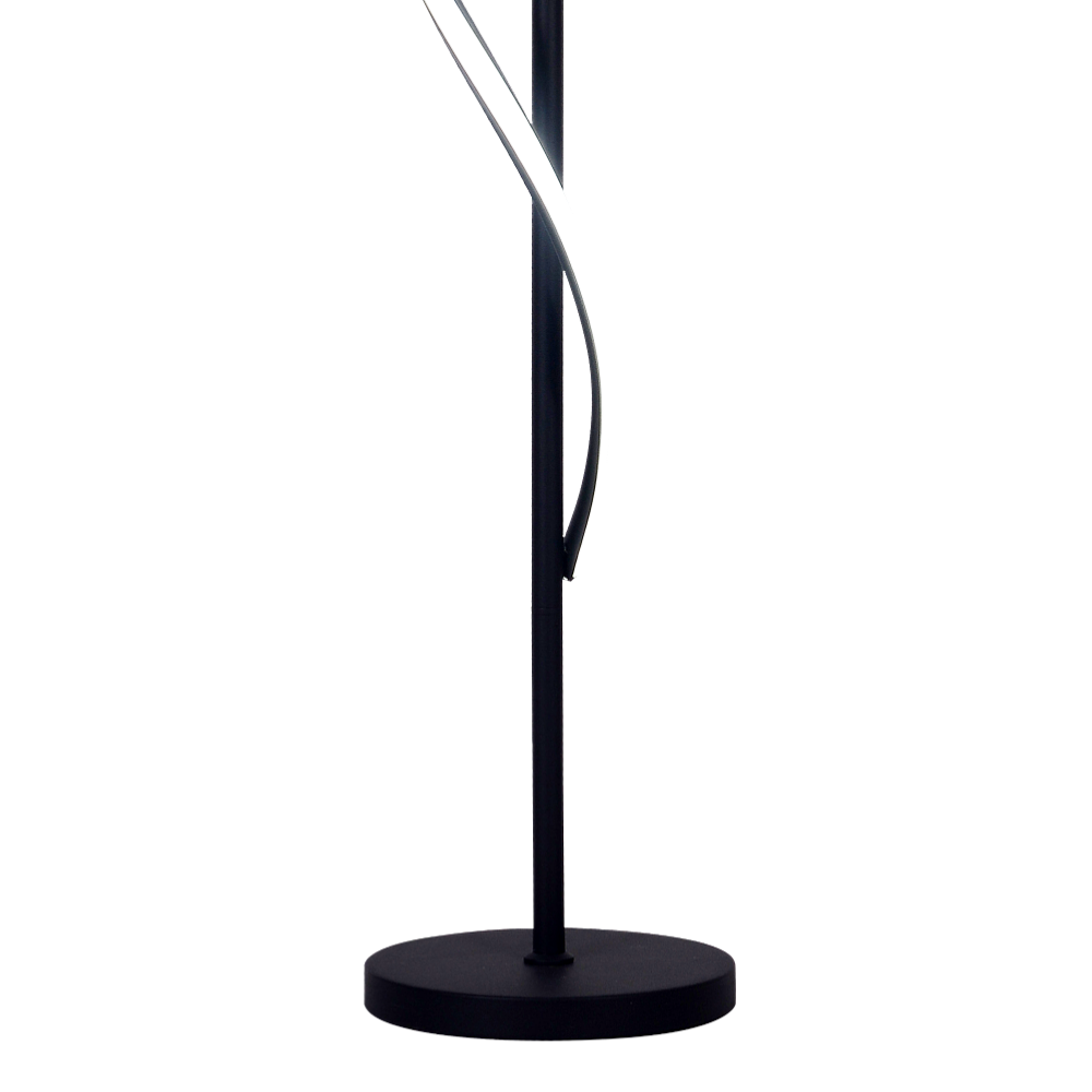 Lámpara de pie Tournai LED 32W negra con diseño moderno curvo y luz neutra 4000K. Ideal para salones y espacios contemporáneos. Ø 22 cm.