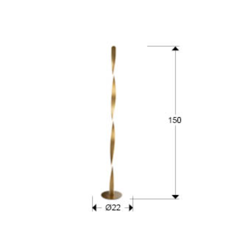 Lámpara de pie Twist LED 40w 3000k integrado acabado oro cepillado estilo moderno 22cm Ø