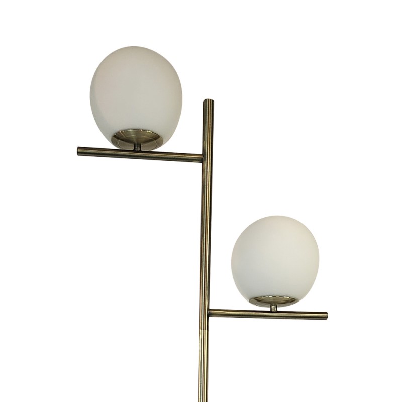 La lámpara de pie modelo Vencejo, con su diseño original y acabado en oro envejecido, añade lujo y sofisticación a cualquier espacio. Fabricada en metal, cuenta con tulipas esféricas de cristal blanco mate que aportan elegancia y estilo. Compatible con bombillas LED (no incluidas), es energéticamente eficiente. Ideal para iluminar un salón o una oficina, crea una atmósfera acogedora y funcional. Disponible también en negro, se adapta a diversos estilos decorativos, convirtiendo la iluminación en un elemento destacado de diseño y funcionalidad.
