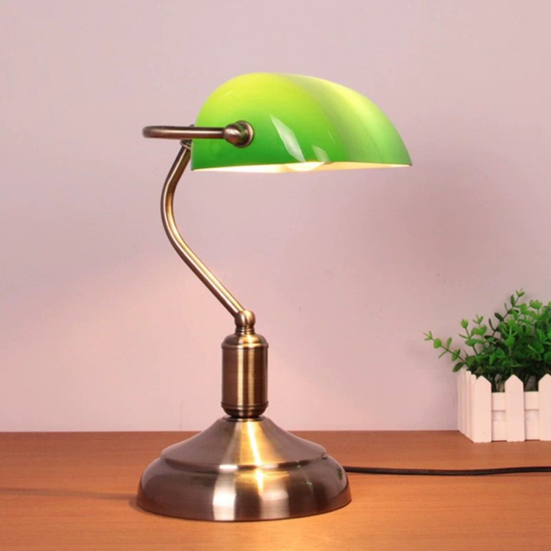 Lámpara de sobremesa Banquero 1xE27 acabado oro envejecido cristal verde estilo clásico