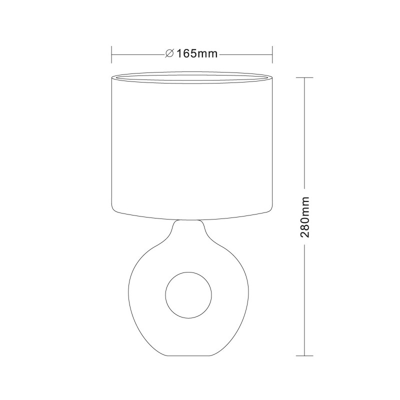 La lámpara de mesa cerámica ELLIE Blanca de CristalRecord es una sobremesa de líneas suaves y estética atemporal, perfecta para aportar luz auxiliar y ambiente en mesitas de noche, aparadores o mesas auxiliares de salón. Su diseño combina una base de cerámica en acabado blanco con una pantalla de tela blanca, logrando una iluminación cálida, uniforme y muy agradable para el uso diario. Equipada con 1 portalámparas E14 (bombilla no incluida), permite personalizar la iluminación escogiendo la bombilla más adecuada (recomendable LED) con una potencia máxima de 25W. Incorpora interruptor ON/OFF en el cable, lo que facilita un encendido cómodo y práctico, especialmente en dormitorios. Diseñada para interior, cuenta con IP20 y Clase II, ofreciendo seguridad y fiabilidad. Por tamaño es ideal para espacios domésticos: 280 mm de alto y Ø165 mm, aportando presencia sin ocupar demasiado en la superficie de apoyo.
