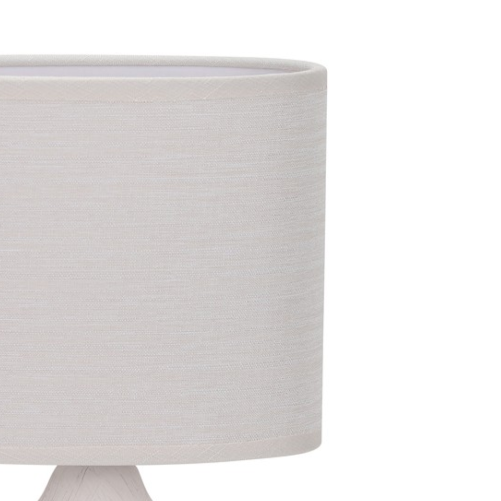 Lámpara de mesa ELLIE Blanca CristalRecord con base de cerámica blanca y pantalla de tela blanca. 1xE14 (sin bombilla), máx. 25W, interruptor en el cable, IP20 y Clase II. Medidas: 28 cm alto y Ø16,5 cm.