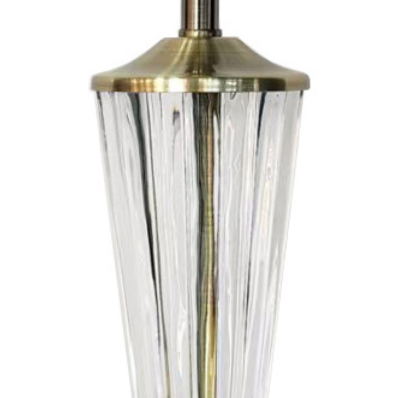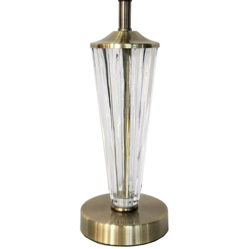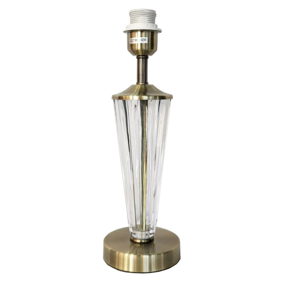 Descubre la lámpara de sobremesa Lena de 37 cm en metal oro envejecido y cristal transparente. Diseño sin pantalla, ideal para decoración elegante y clásica.